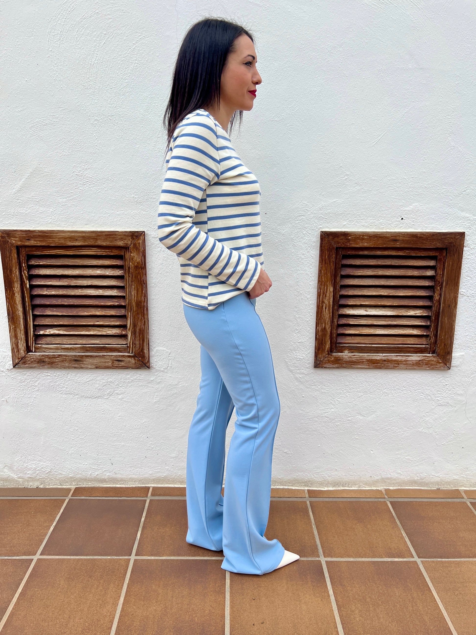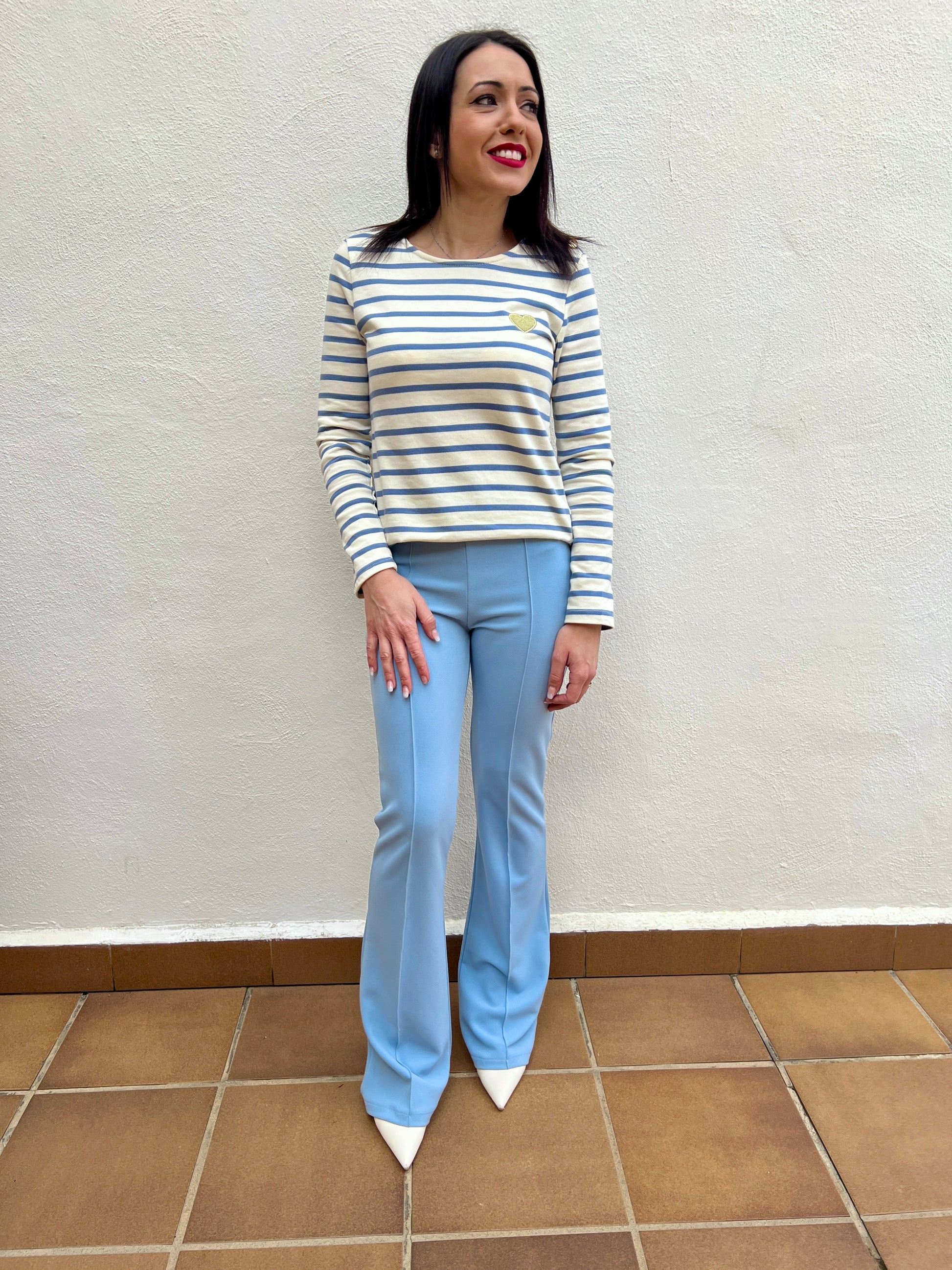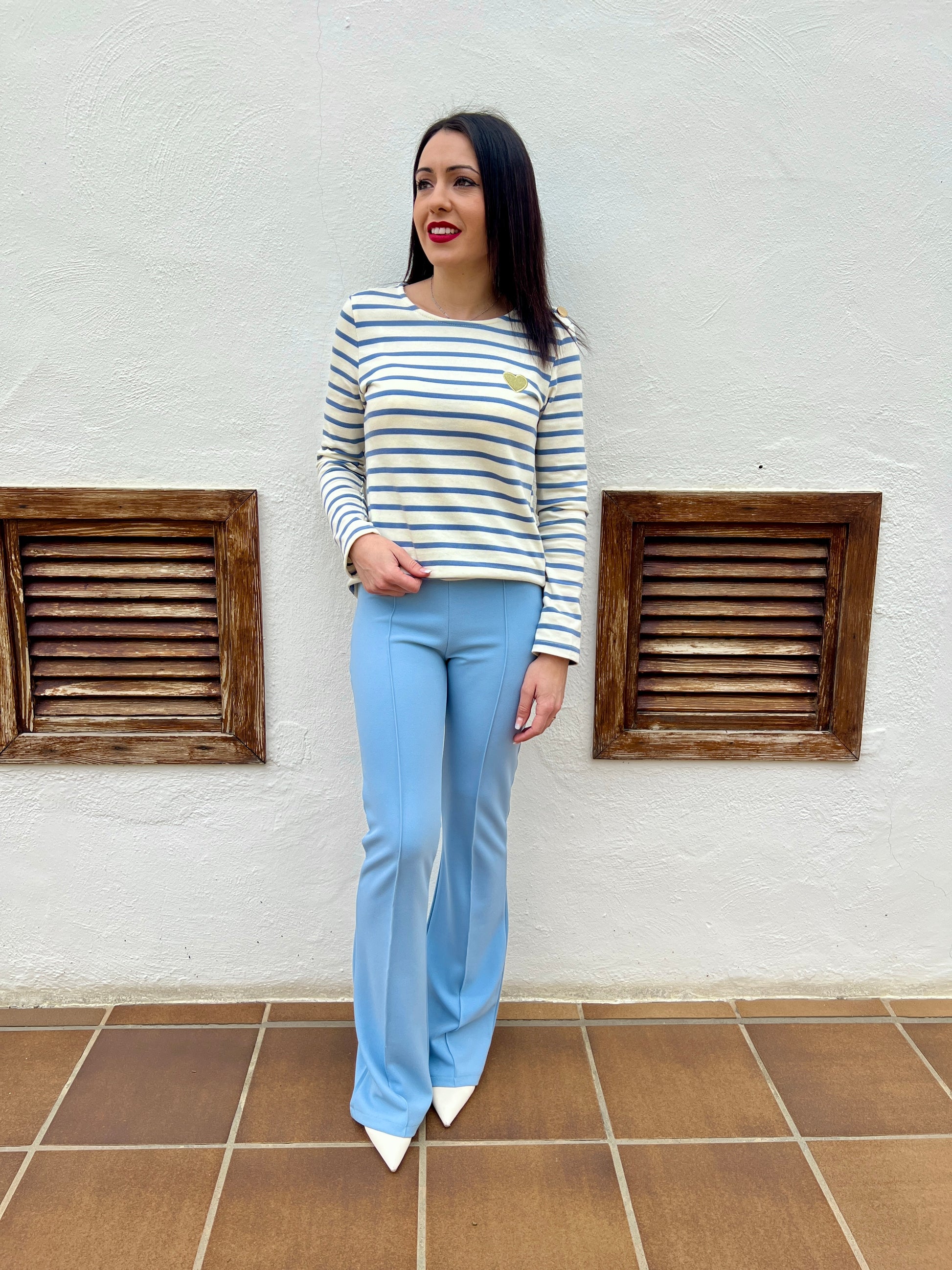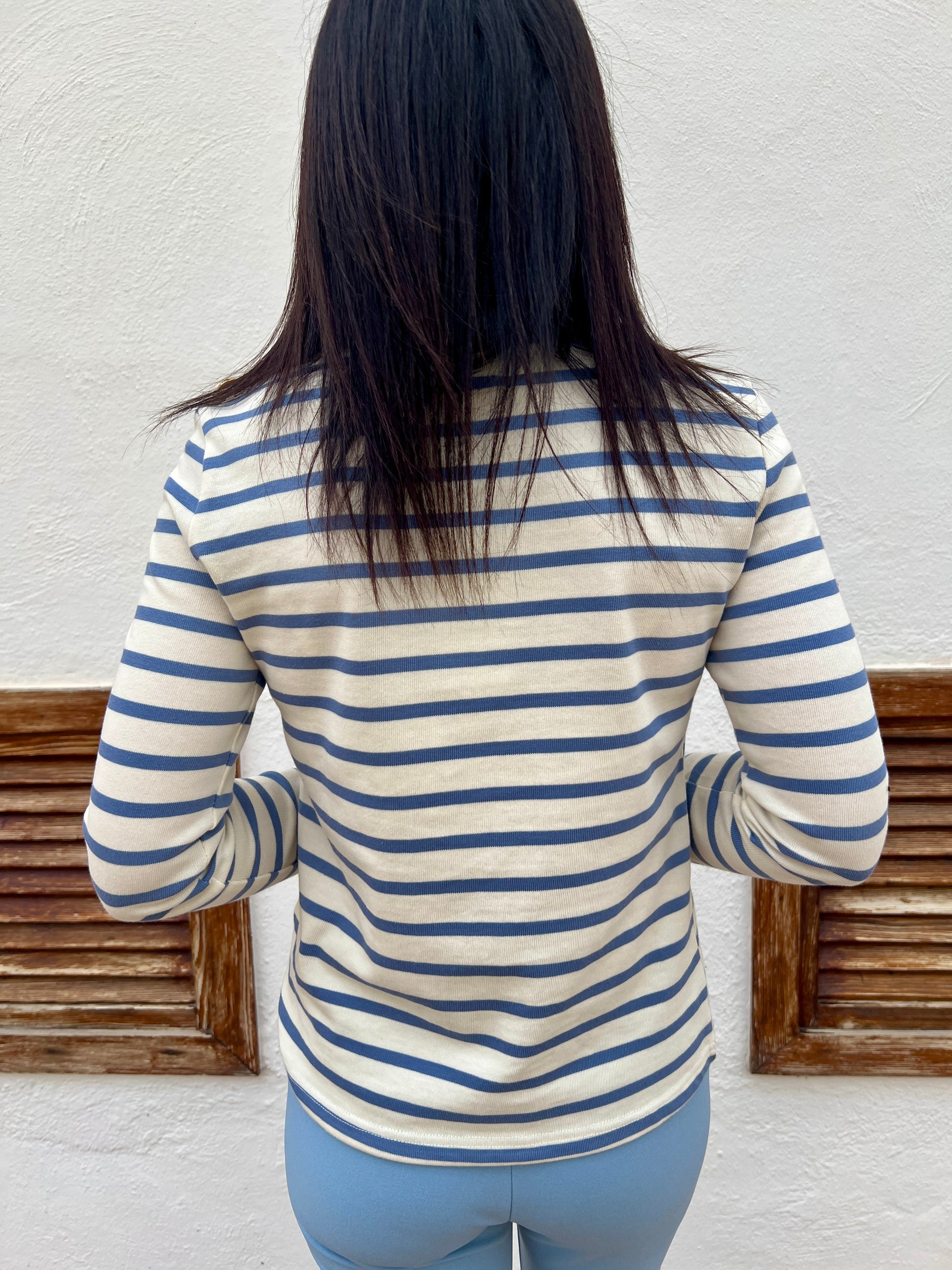 Descubre la elegancia y el estilo de la camiseta Maray. Con su diseño de rayas en tonos azules y detalles bordados en dorado, esta camiseta es perfecta para cualquier ocasión. Combina comodidad y sofisticación en un solo producto. ¡Hazla tuya ahora!