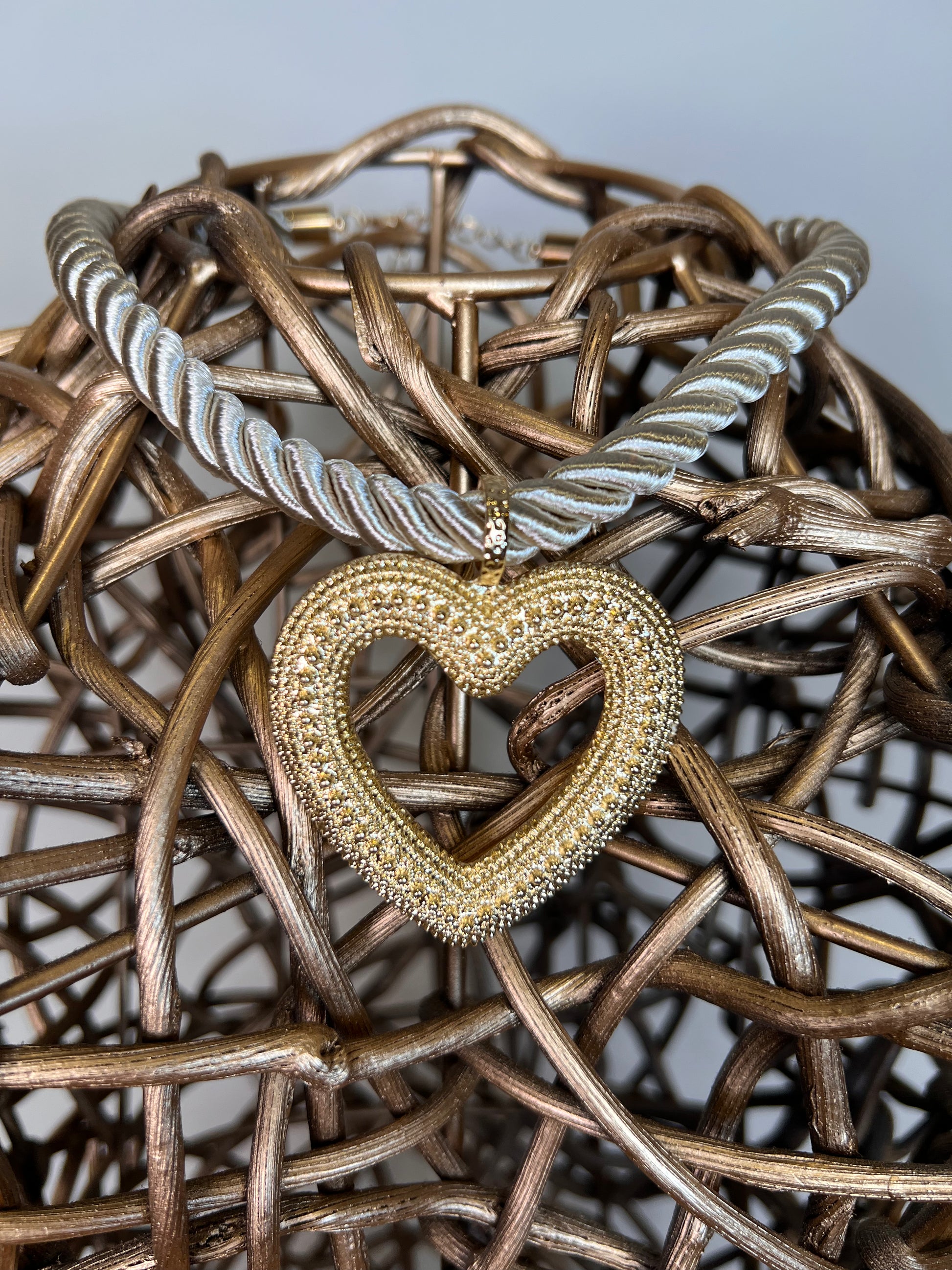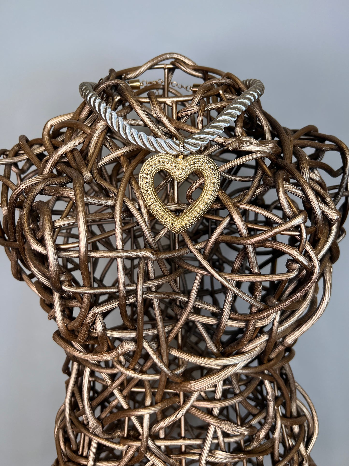 Este collar corazón es el accesorio perfecto para cualquier ocasión. Con su hermoso corazón dorado y su cordón en beige, agregará un toque de elegancia y estilo a cualquier atuendo. Además, su tira ajustable trasera asegura un ajuste perfecto para cualquier tamaño de cuello. ¡Haz una declaración de moda con este collar único y hermoso!