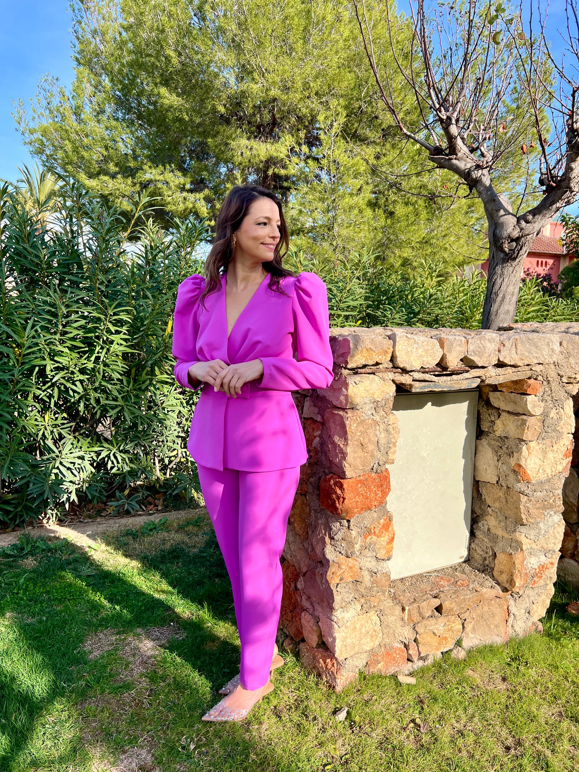Este Conjunto Galiana es perfecto para cualquier fiesta o evento especial. Incluye un pantalón ajustado que resalta tu figura y un cuerpo con escote en pico y mangas abullonadas para un look elegante. Los dos botones decorativos añaden un toque de estilo adicional. ¡Sé el centro de atención con este conjunto!
