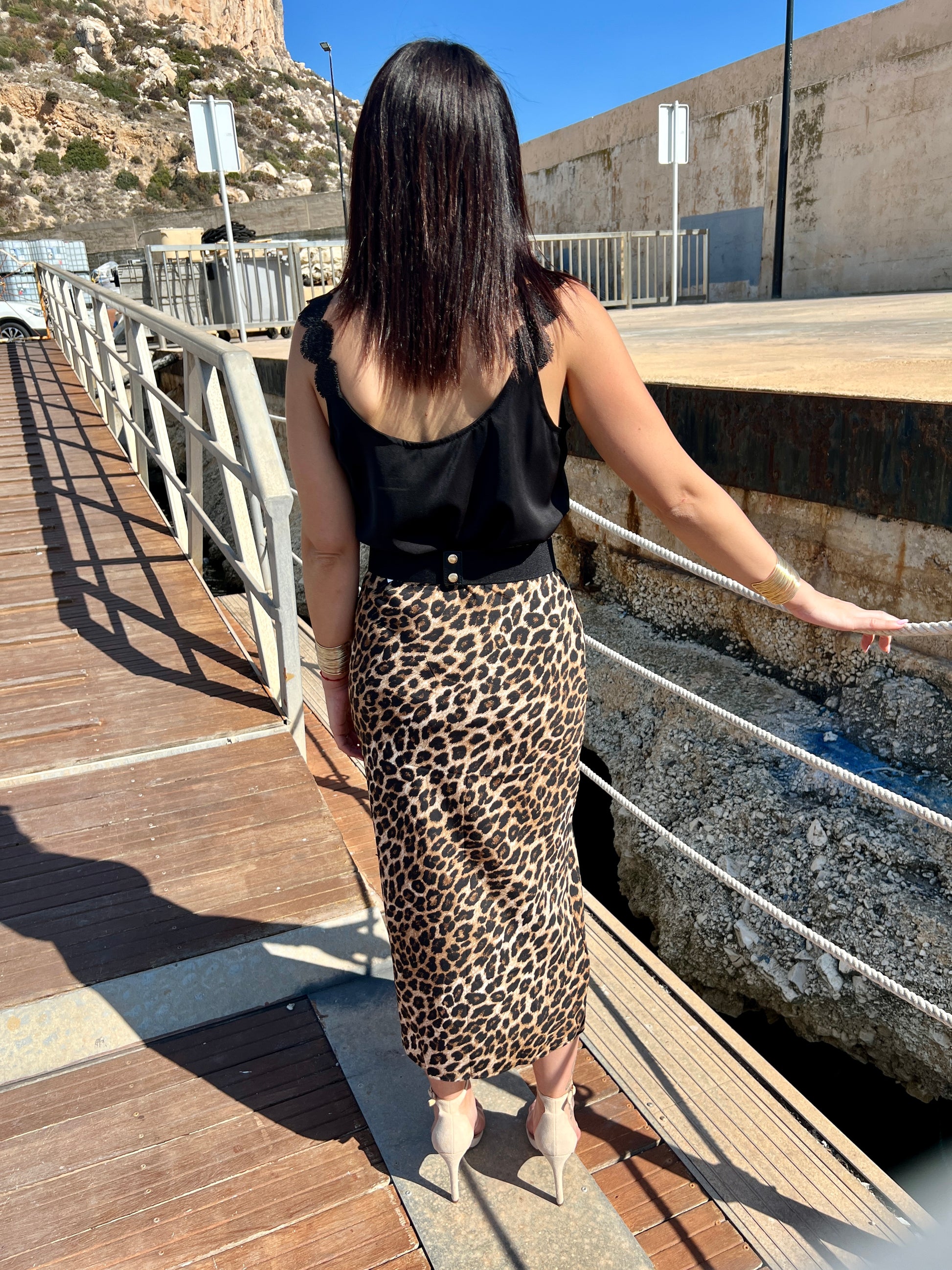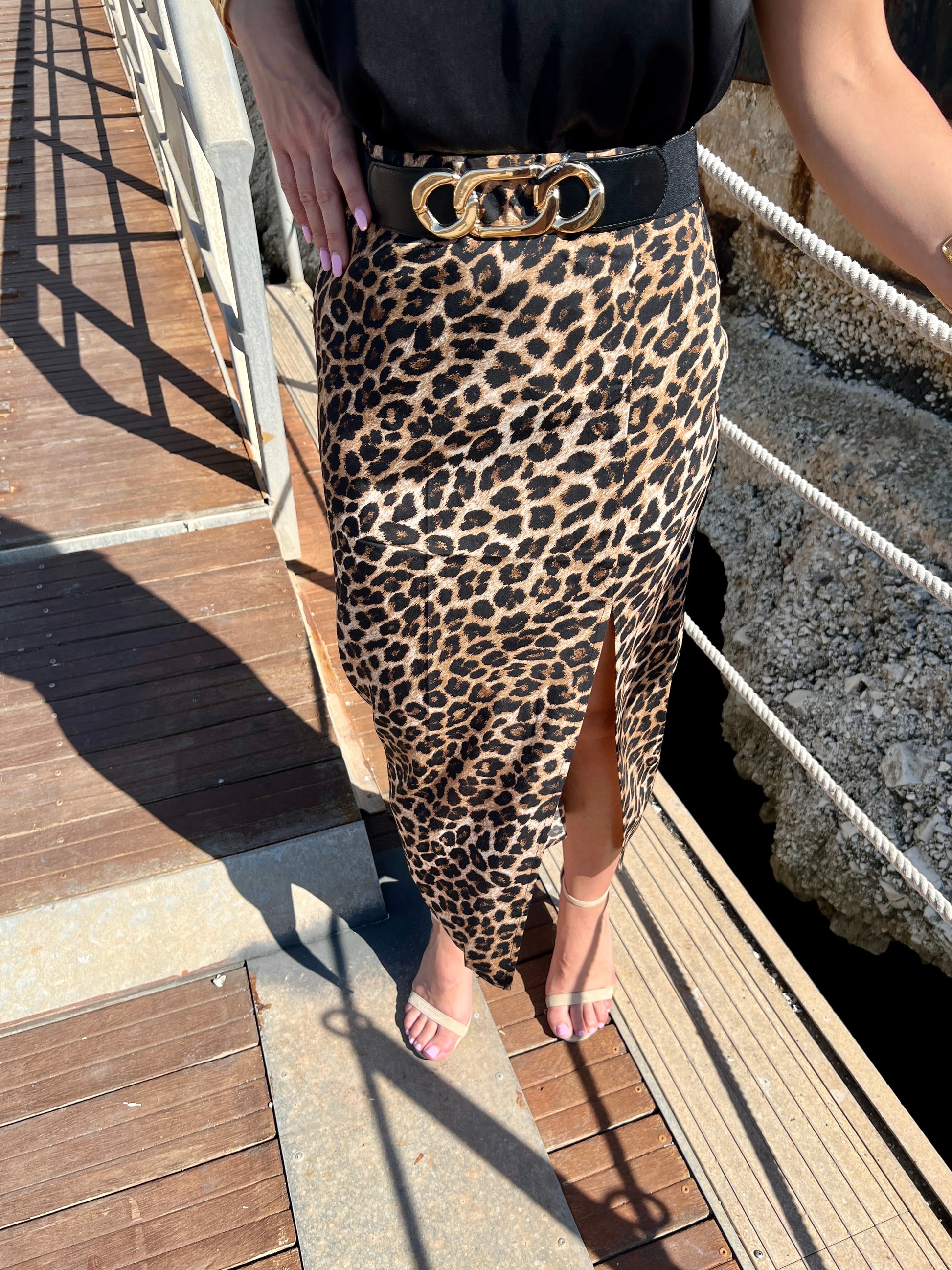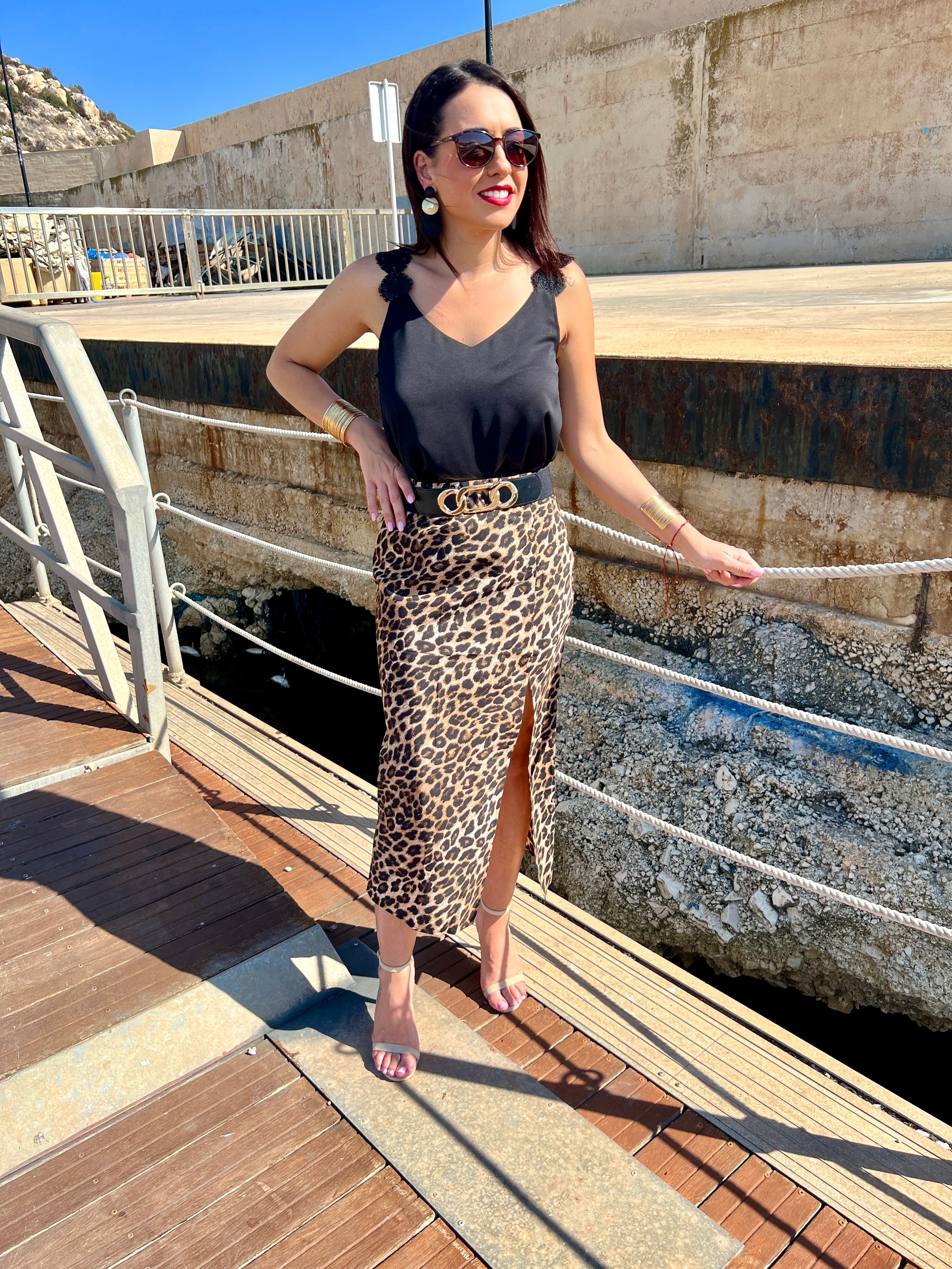 ¡Destaca con estilo con nuestra falda Carina! Con su elegante estampado animal print, su cierre con cremallera y su abertura en un costado, esta falda es perfecta para cualquier ocasión. Siéntete segura y sofisticada con esta prenda que te hará destacar entre la multitud. ¡Hazte con ella ahora!
