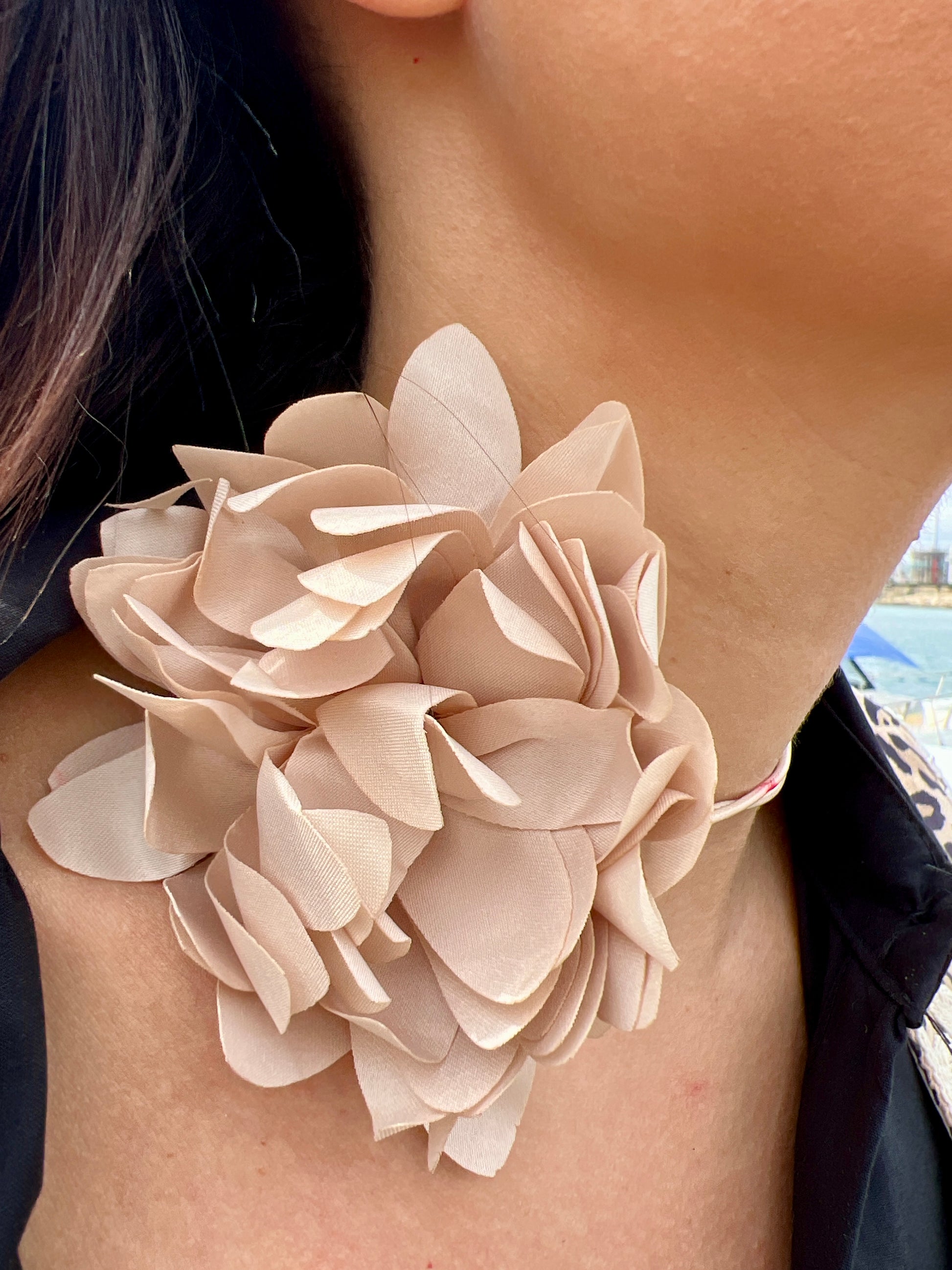 El Collar Flor Beige es una pieza única que presenta un hermoso diseño en forma de flor, elaborado con cuerda fina y anudado a mano. Con este collar, podrás agregar un toque de elegancia y sofisticación a cualquier atuendo. Su detalle en forma de flor es perfecto para resaltar tu estilo y personalidad.