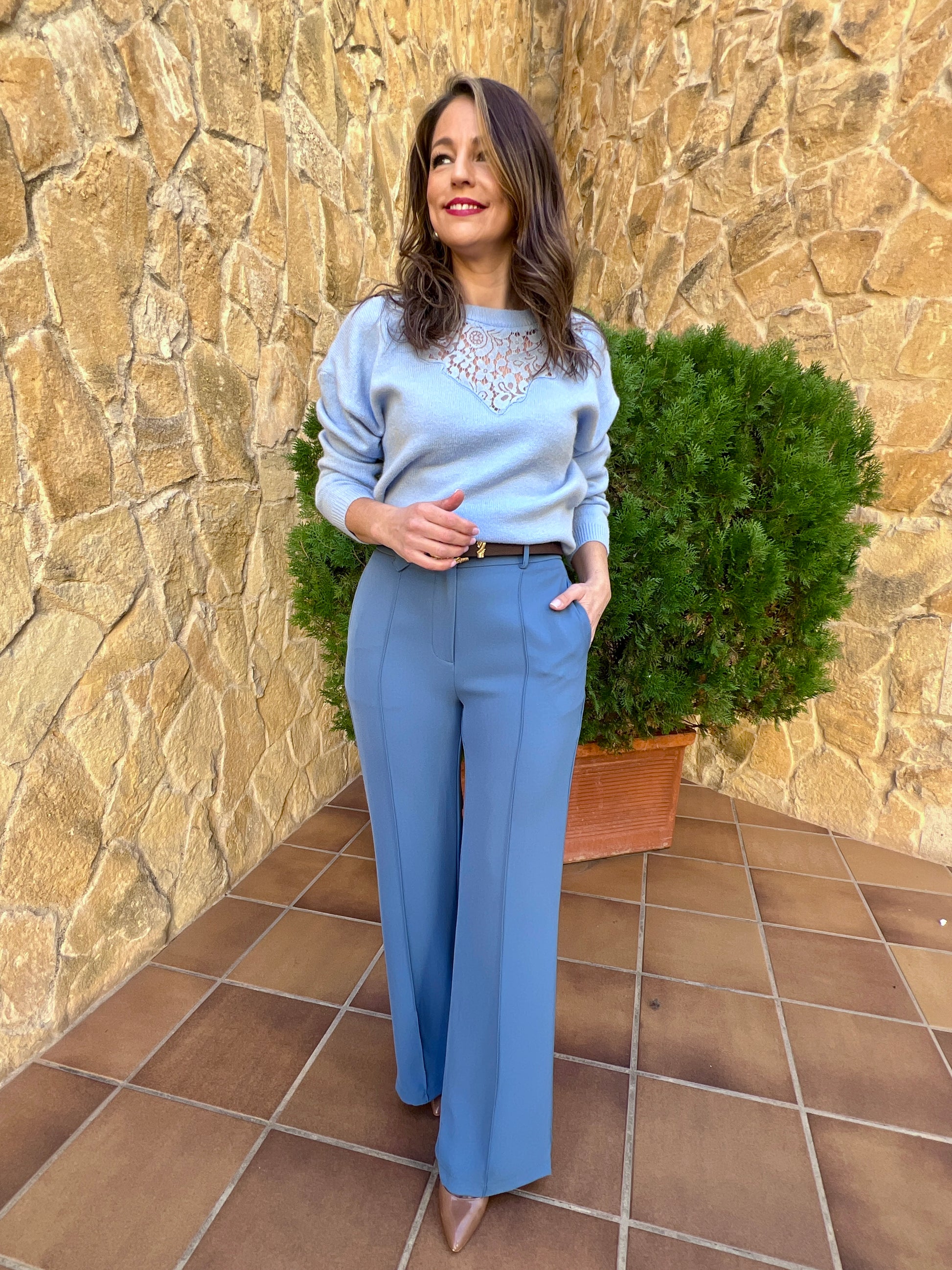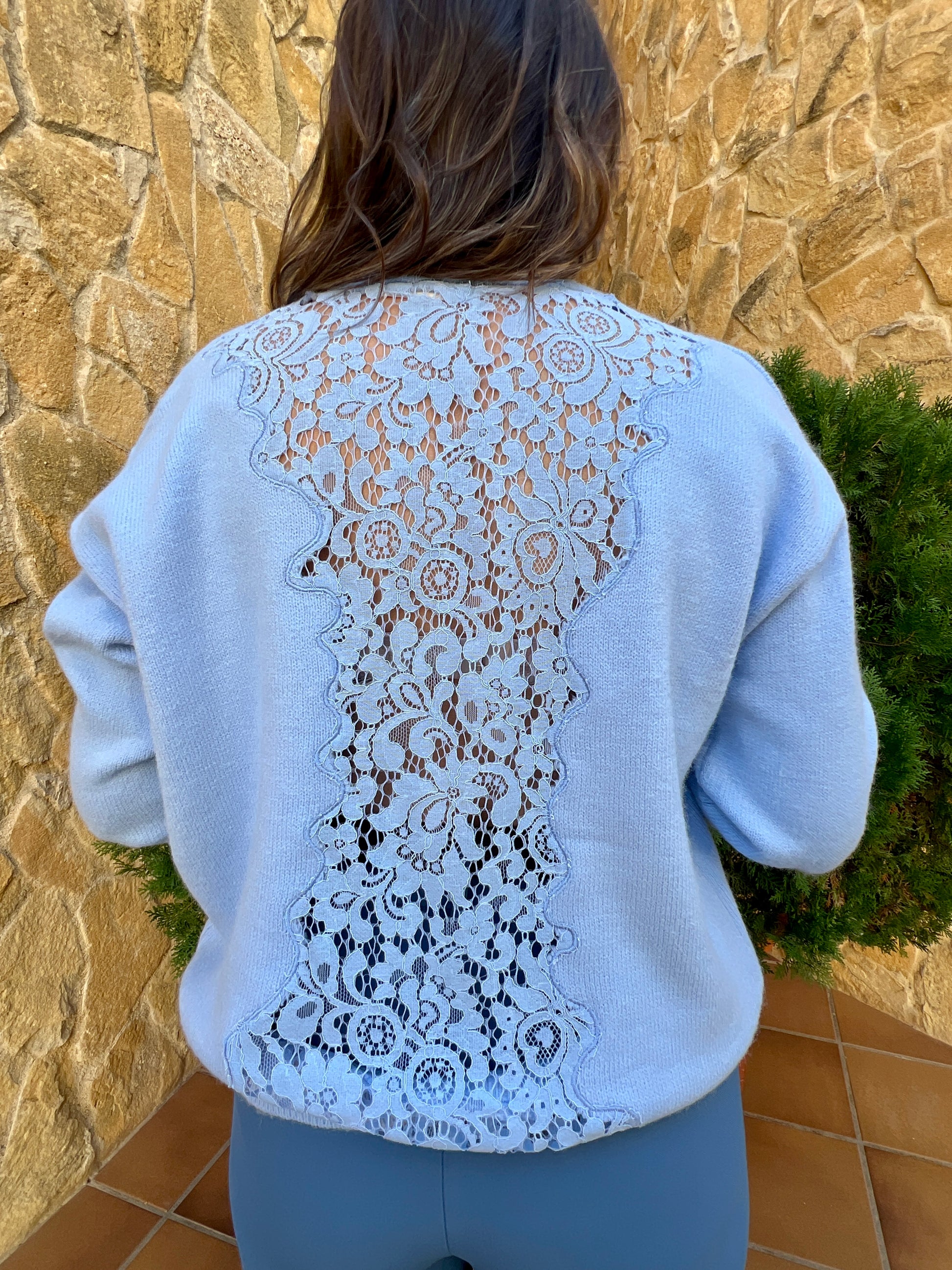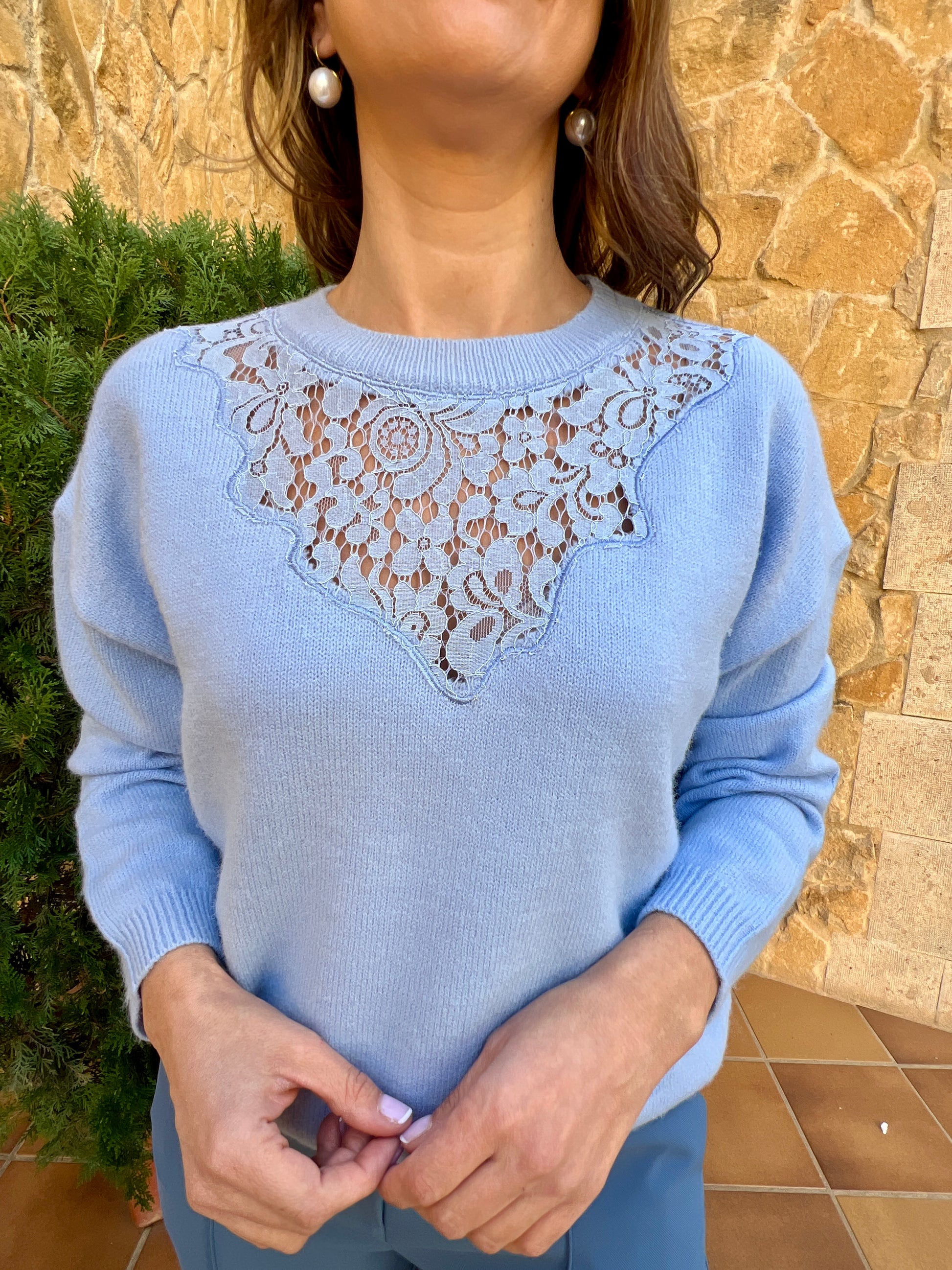 Este jersey Clara es elegante y femenino, con detalles de encaje en la parte delantera y trasera combinados con suave punto. Te mantendrá abrigada y a la moda en cualquier ocasión. Diseñado con atención a los detalles y tejidos de alta calidad, este jersey es imprescindible en tu guardarropa de otoño.