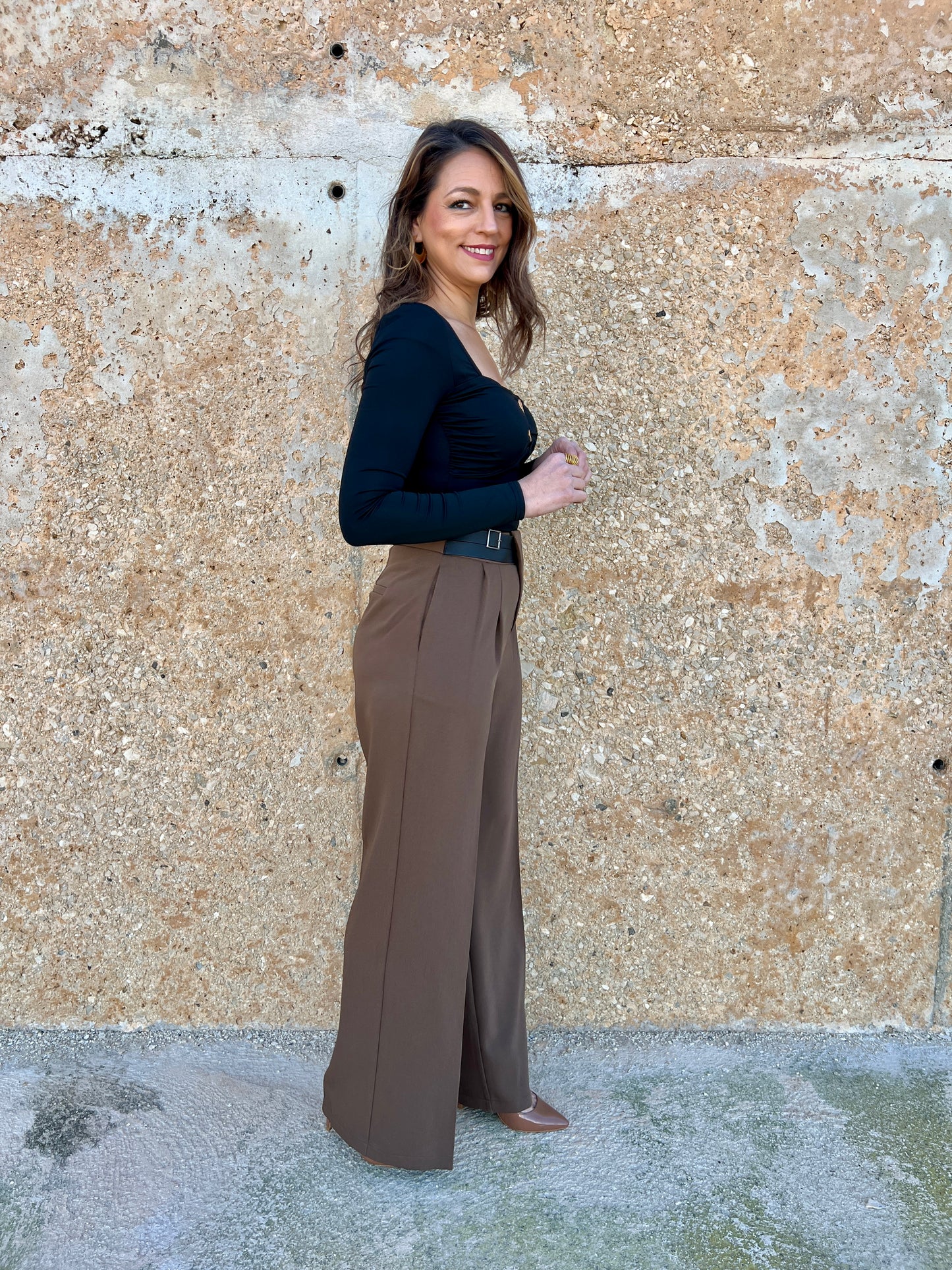 Este pantalón recto y ancho viene con un cierre original de cinturón en un tono de moda de moka mouse. Su diseño proporciona un ajuste cómodo y moderno, perfecto para cualquier ocasión. Con su estilo elegante y en tendencia, este pantalón Bruna te hará lucir siempre sofisticada y a la moda. ¡Haz una declaración de estilo con el Pantalón Bruna!