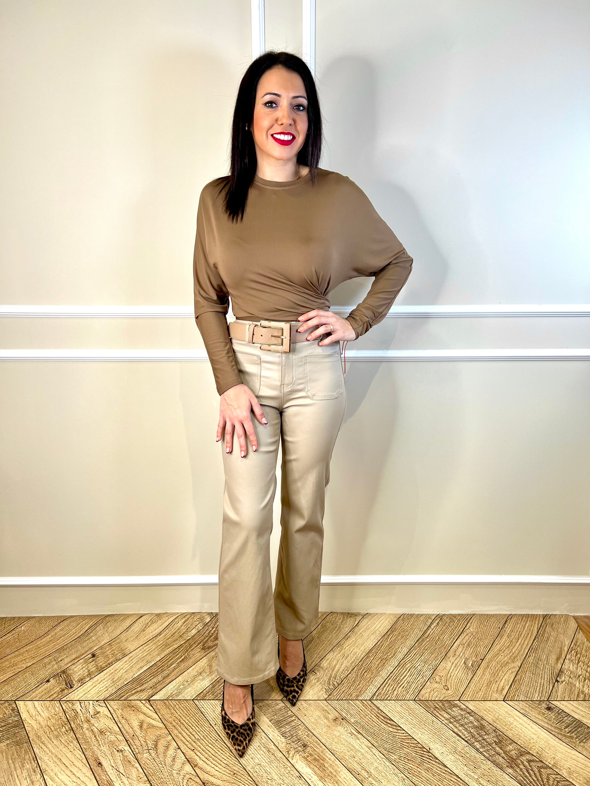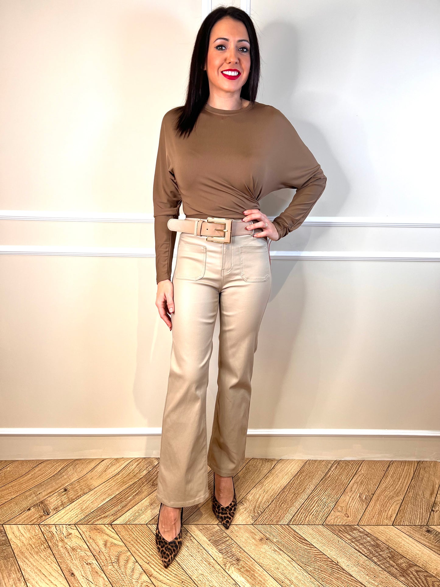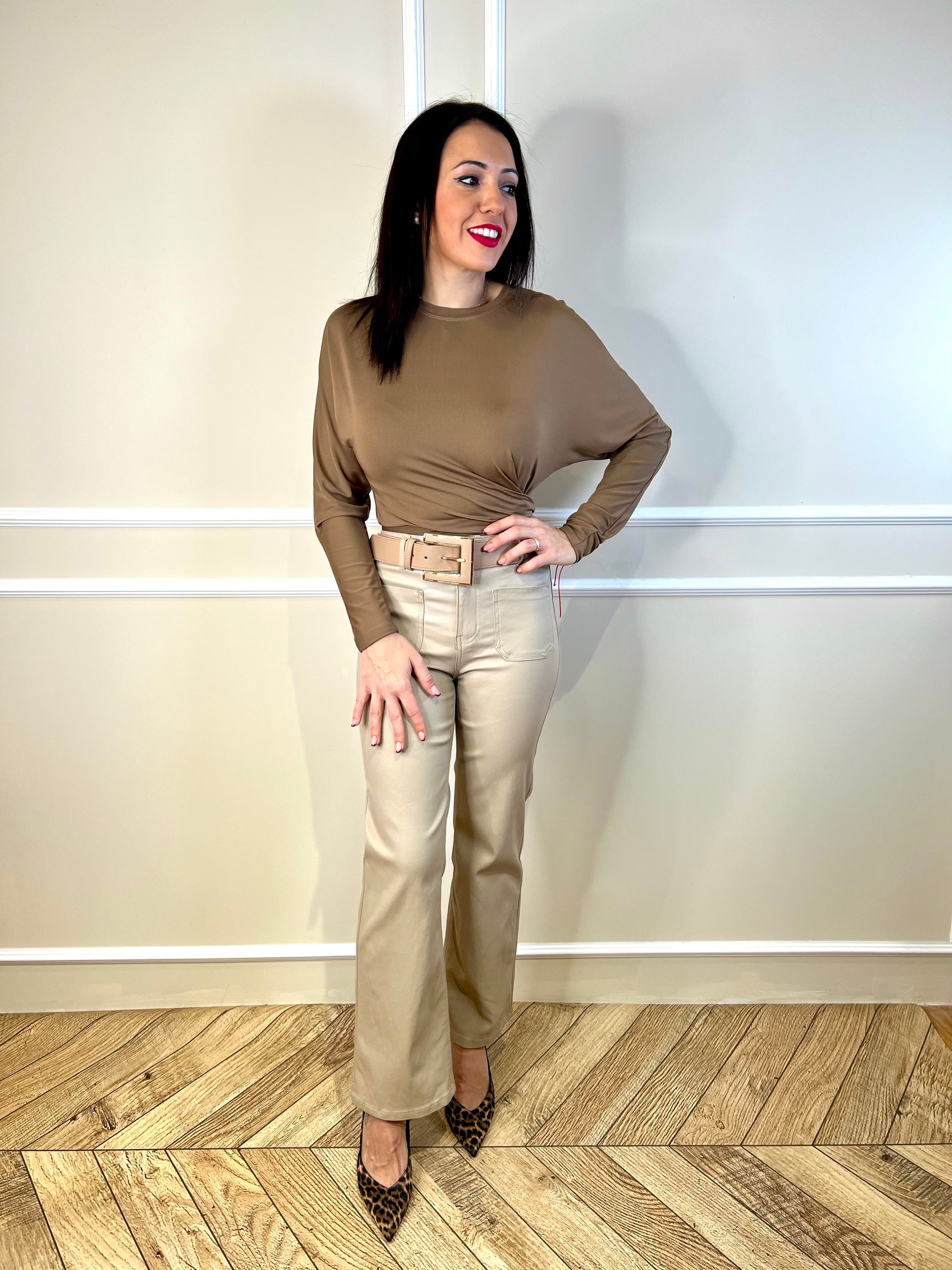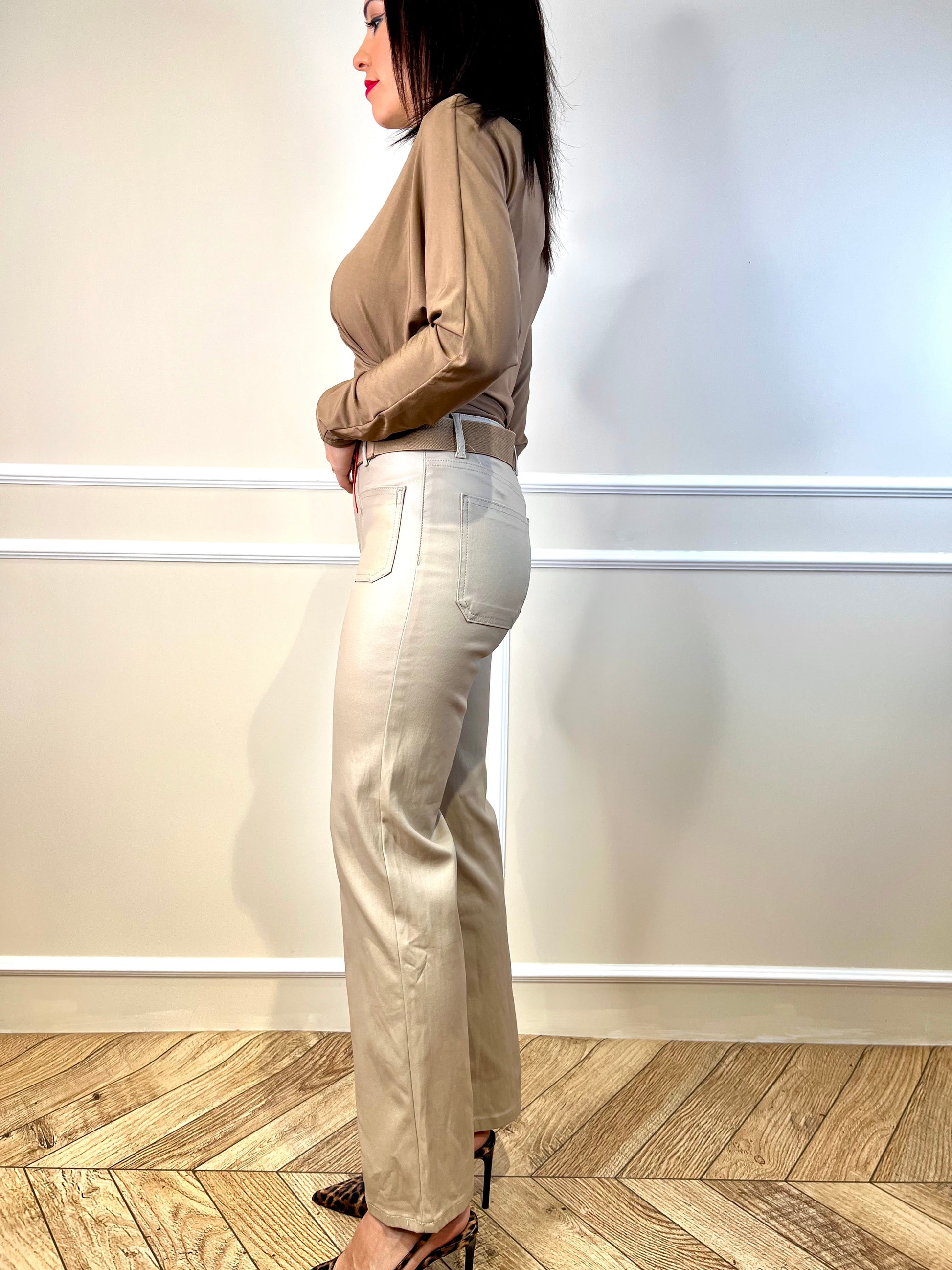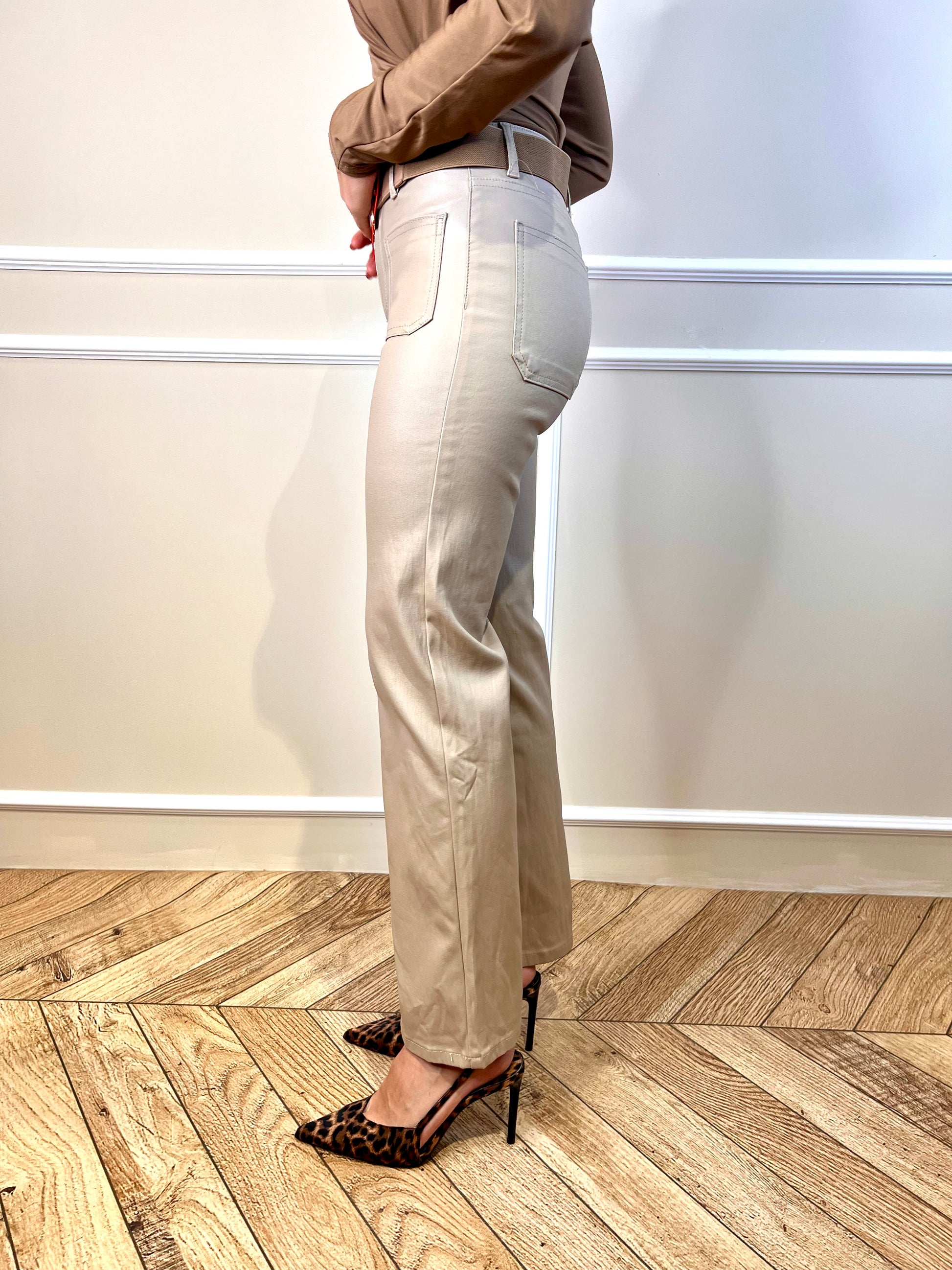 Este pantalón Tania es perfecto para cualquier ocasión. Hecho de una tela encerada en un tono beige, este pantalón te da un aspecto elegante y sofisticado. Además, su corte y ajuste te brindan comodidad durante todo el día. ¡Aprovecha al máximo tu estilo con este pantalón de calidad!