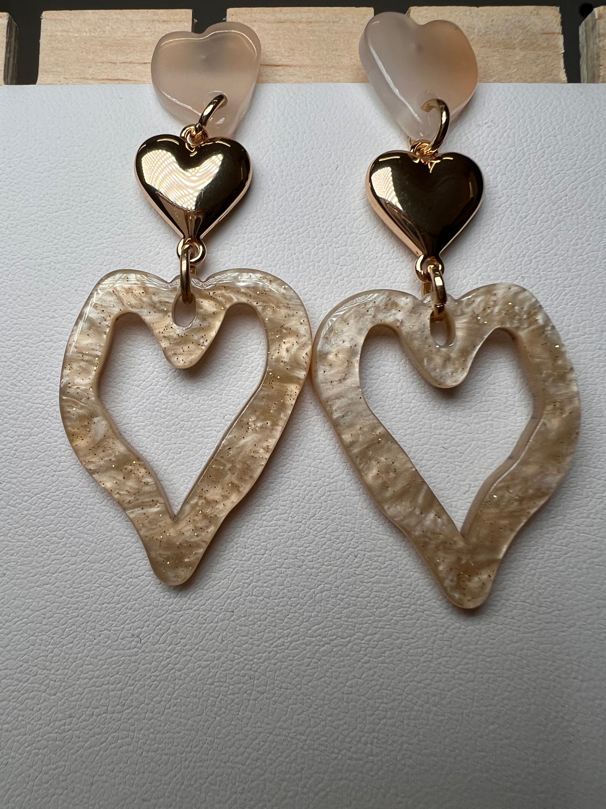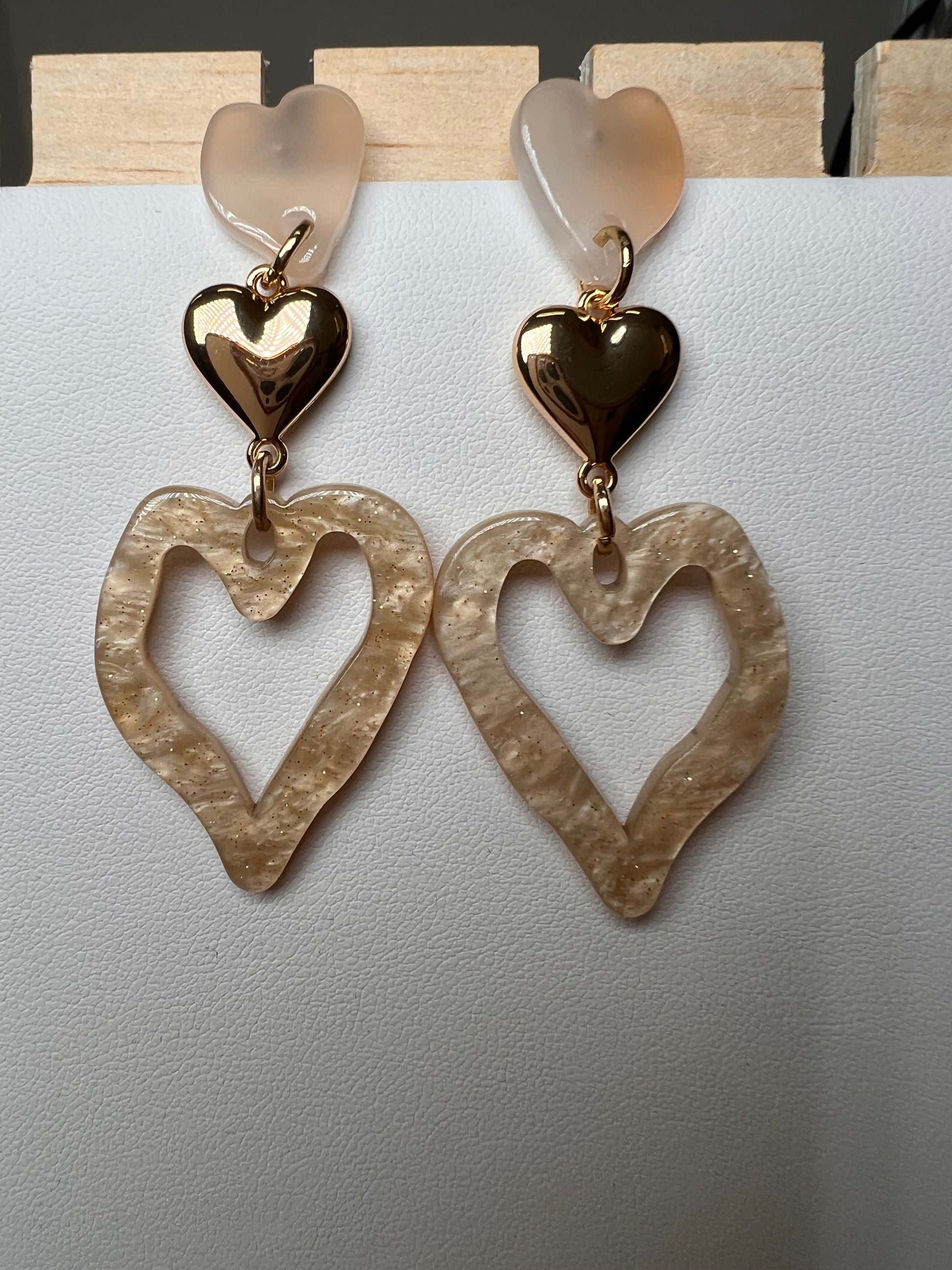 "Encuentra la elegancia pura con nuestro Pendiente Corazón. Con tres tiras de corazones en diferentes tamaños en una combinación de beige camel y dorado, este pendiente es perfecto para añadir un toque sofisticado a cualquier atuendo. Conviértete en el centro de atención con este accesorio refinado y de pura elegancia."