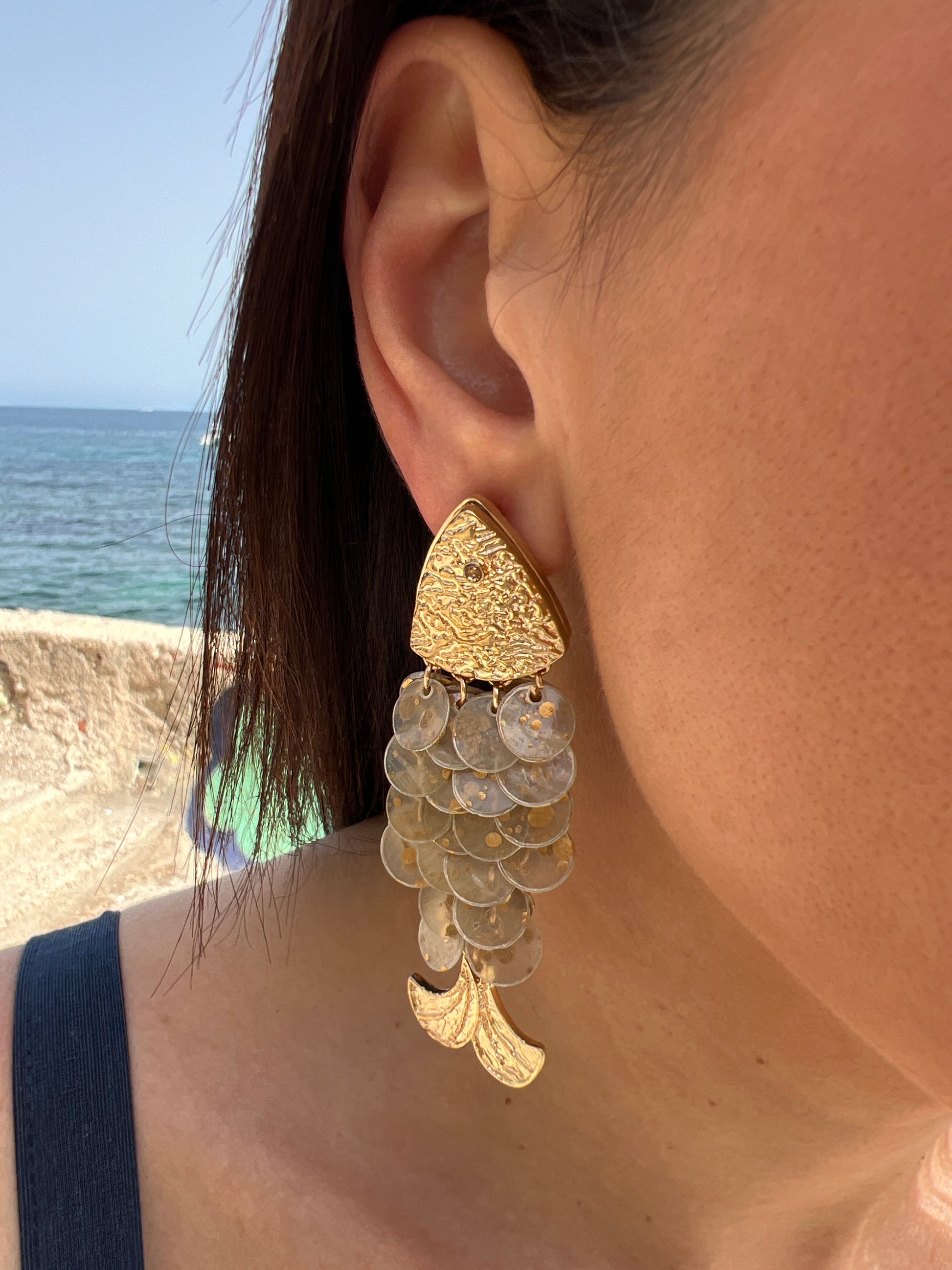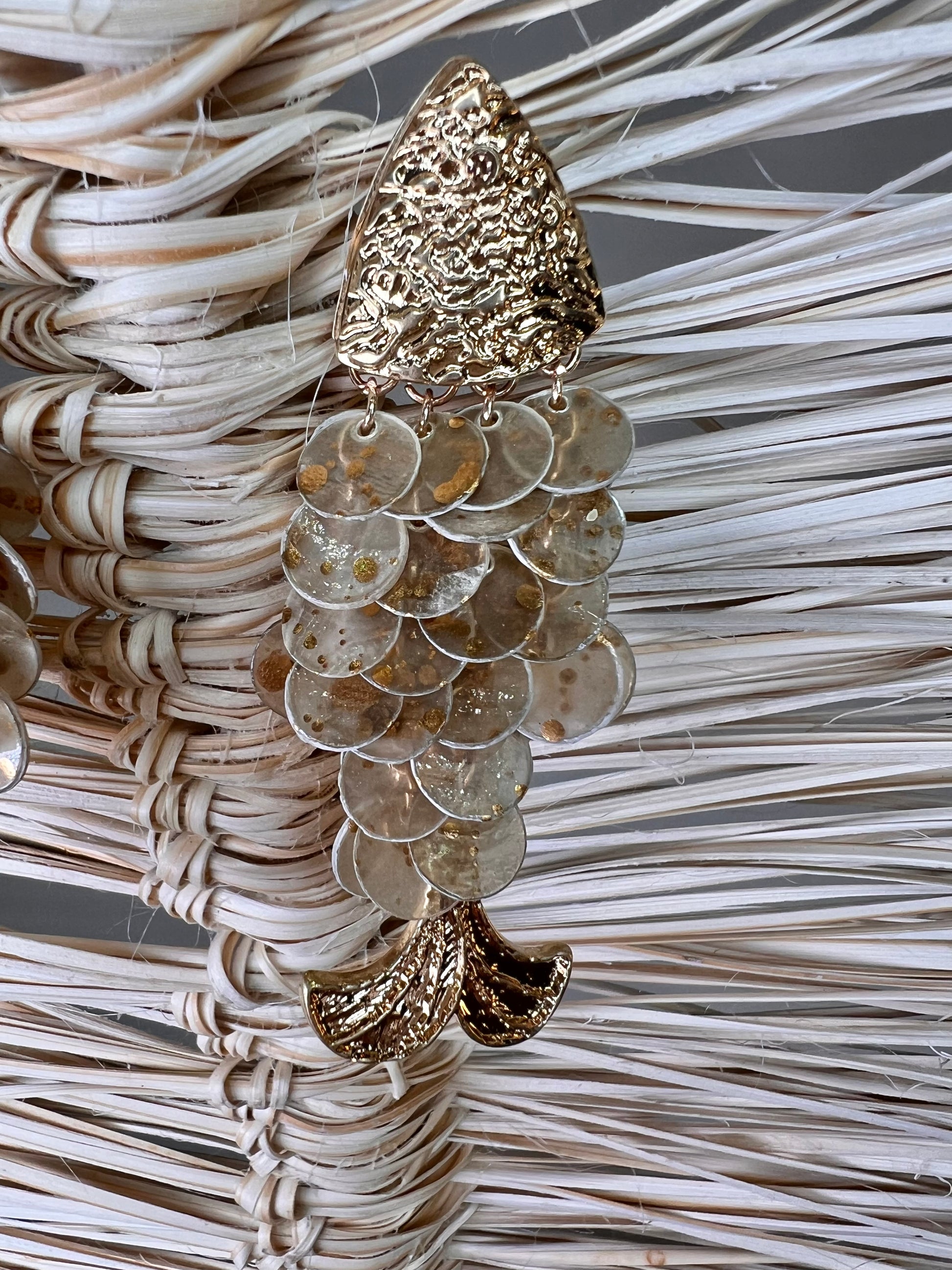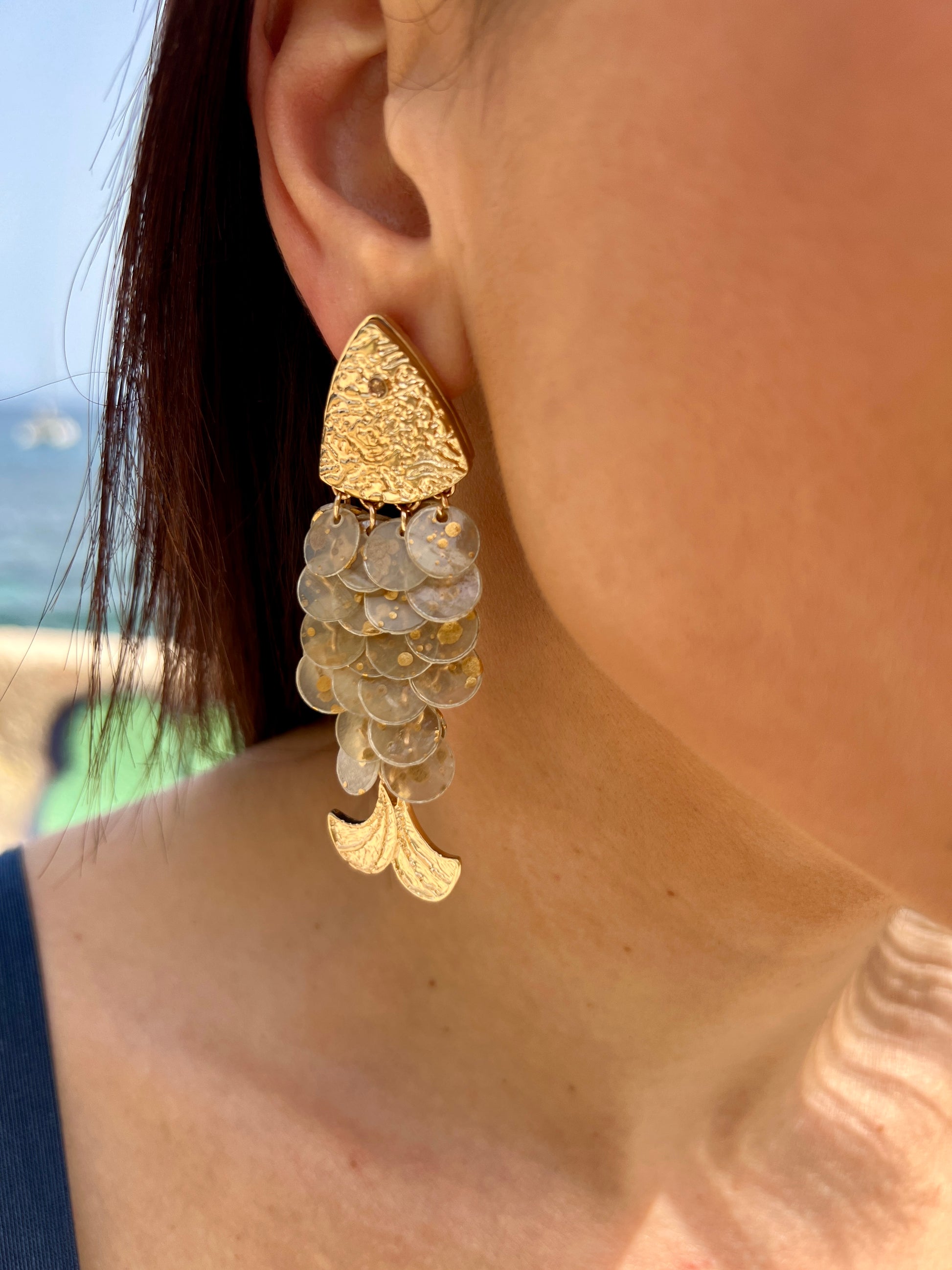 Este Pendiente Pescaito es la pieza perfecta para añadir un toque de elegancia y diversión a tu outfit. Su forma de pescado en tonos beige y dorado, junto con su movimiento, lo hacen único y llamativo. Conviértete en un experto de la moda con este pendiente que te hará destacar en cualquier ocasión.