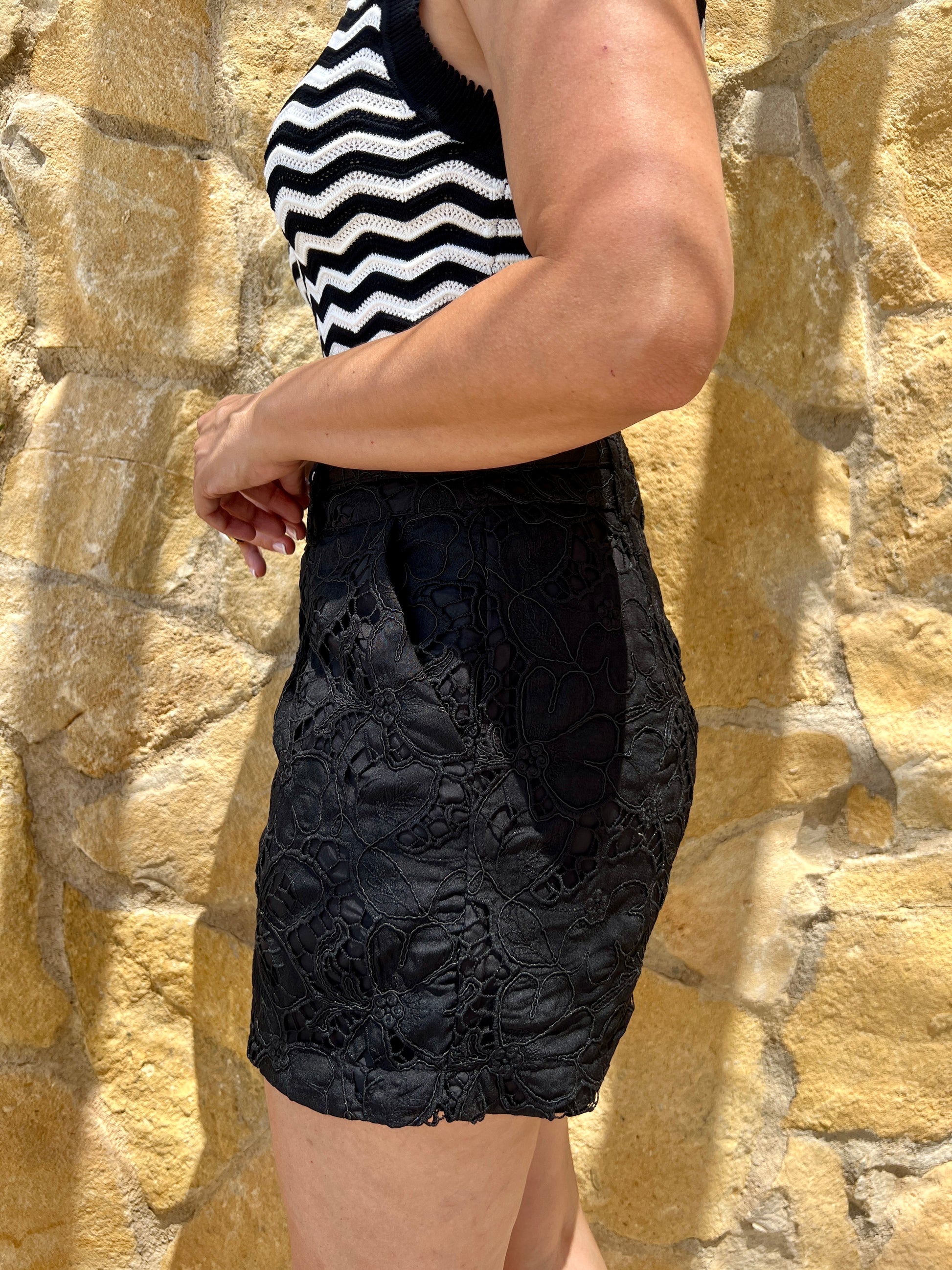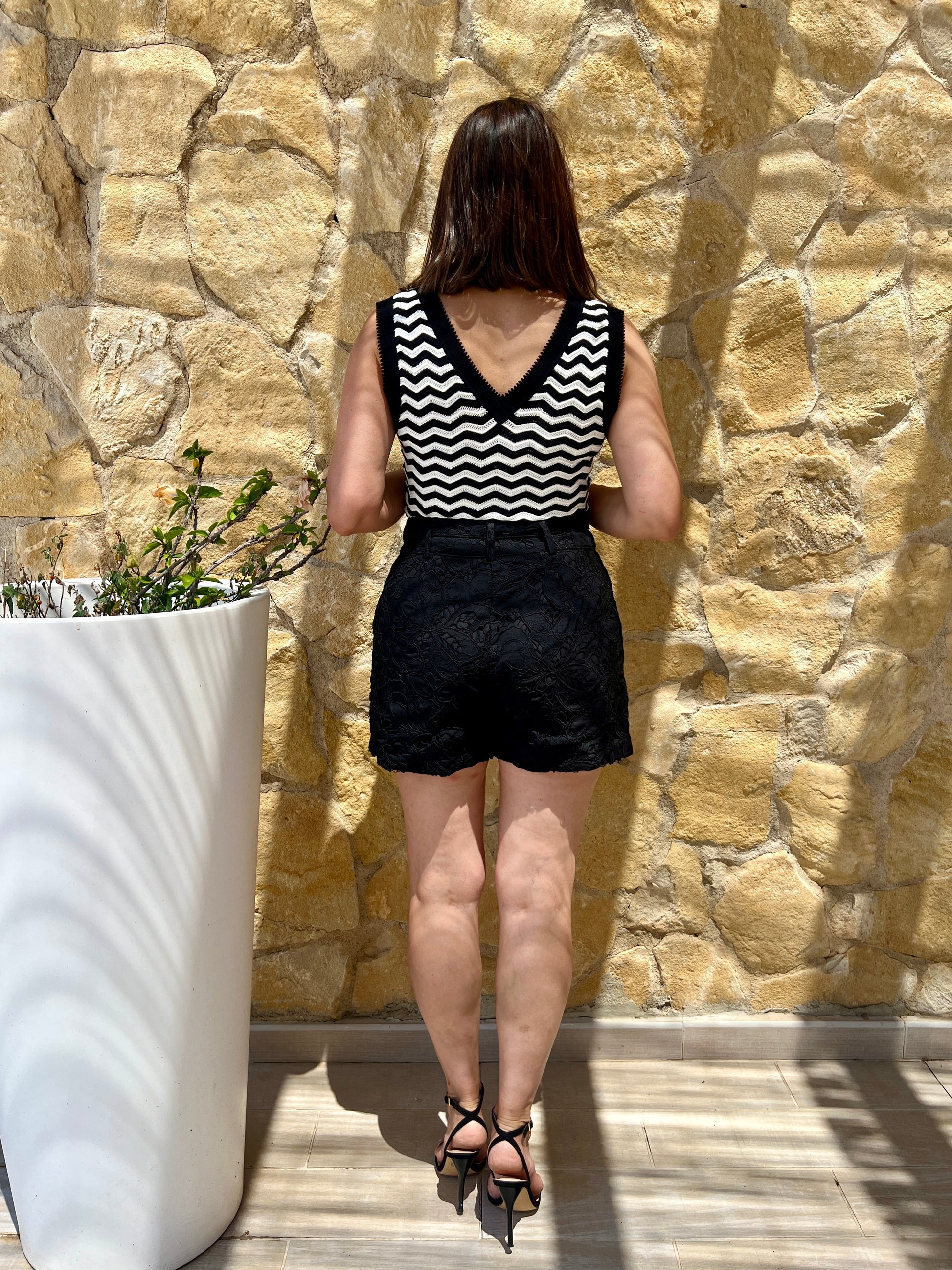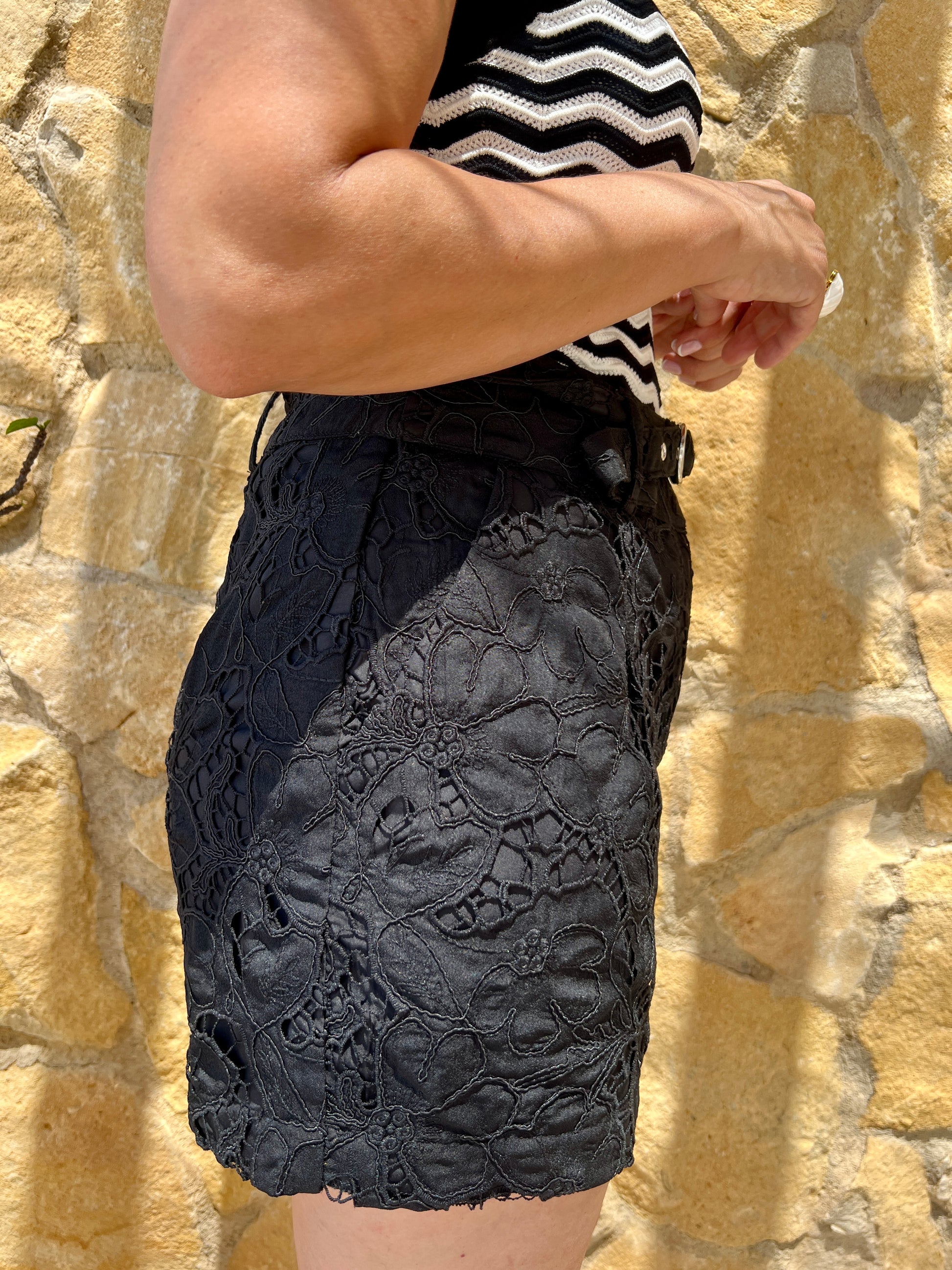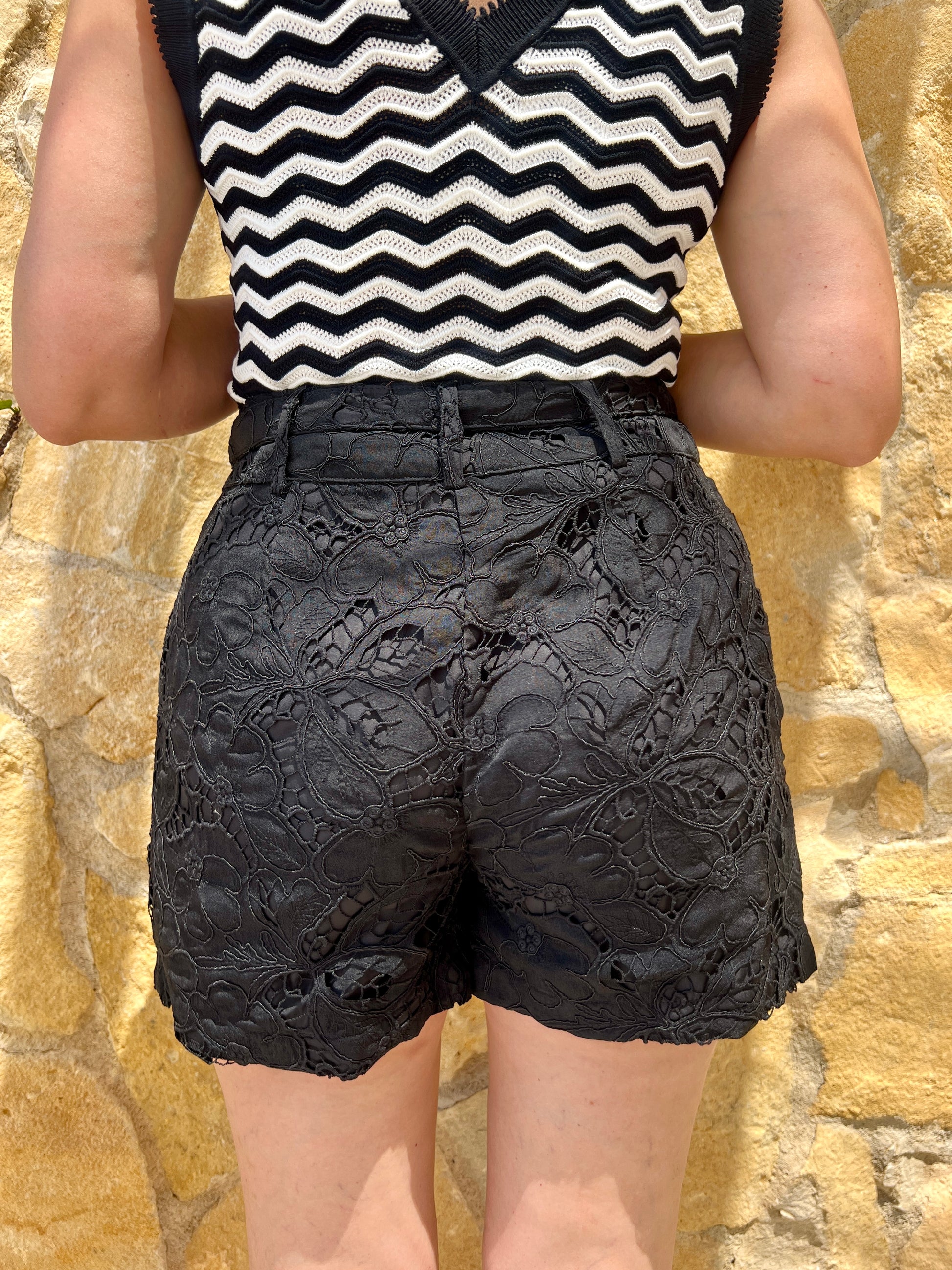 Este Short Tracy en negro está confeccionado en tejido de guipour y cuenta con un cinturón incluido para un estilo versátil y elegante. Con un diseño clásico pero moderno, este short es perfecto para cualquier ocasión, ya sea para un look casual o para una ocasión especial. Sorprende con su detalle de guipour y su cinturón para un look único y chic.