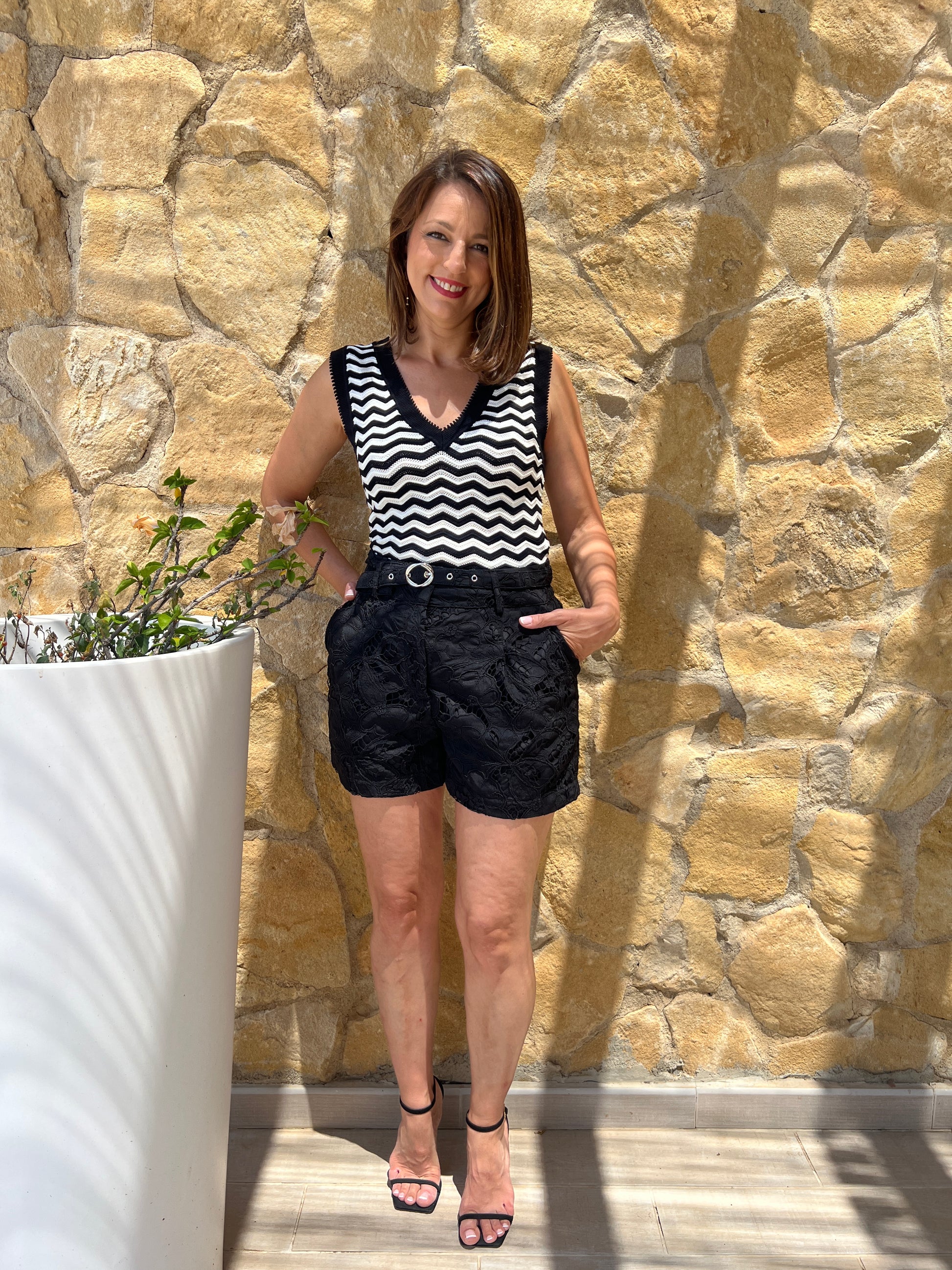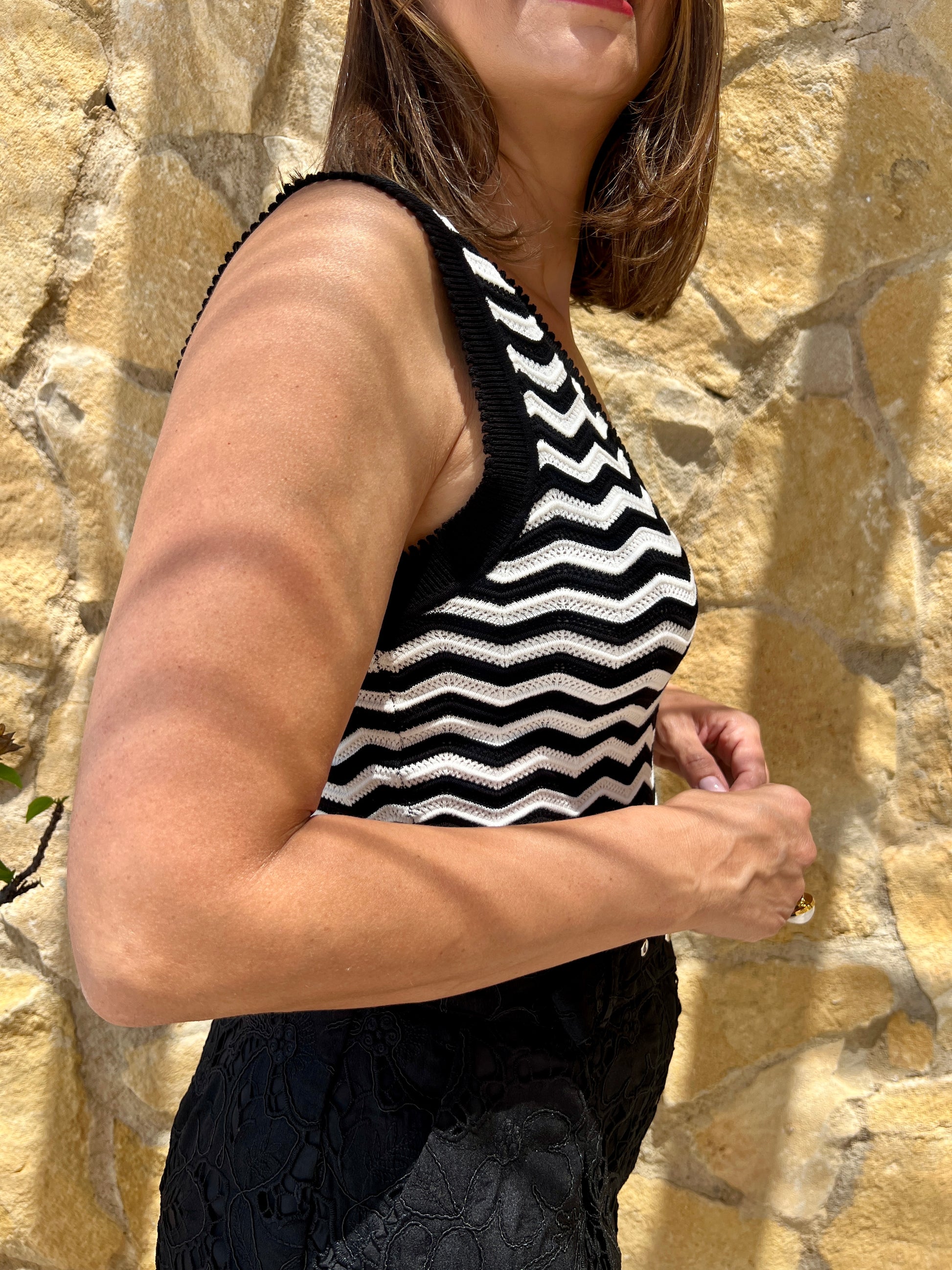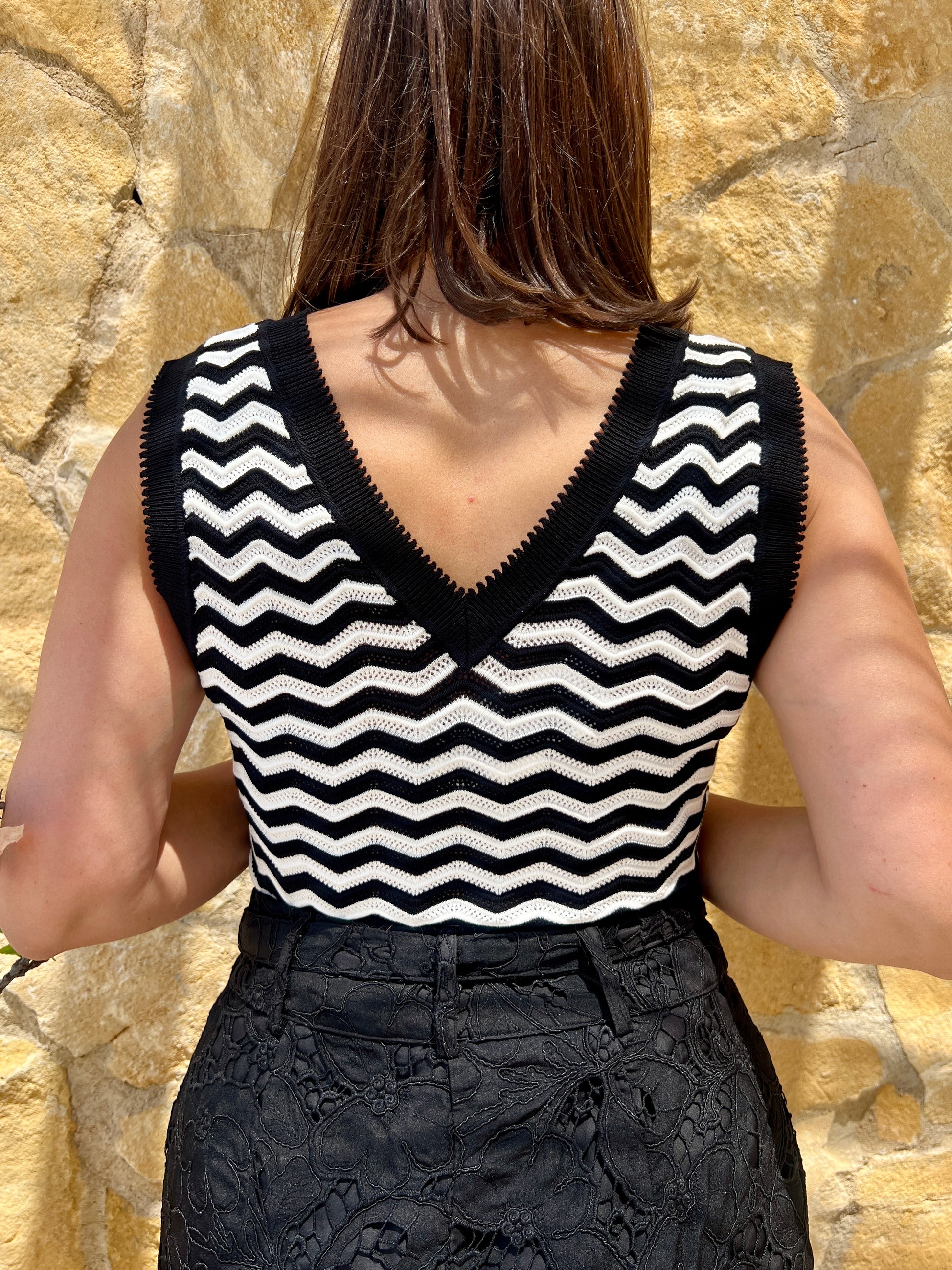 Este Top Mireia es perfecto para cualquier ocasión. Con su tejido zig zag y escote pico tanto por delante como por detrás, te garantiza un look elegante y sofisticado. Además, su material de punto lo hace comodísimo y perfecto para cualquier temporada. ¡Hazte con el tuyo ahora!