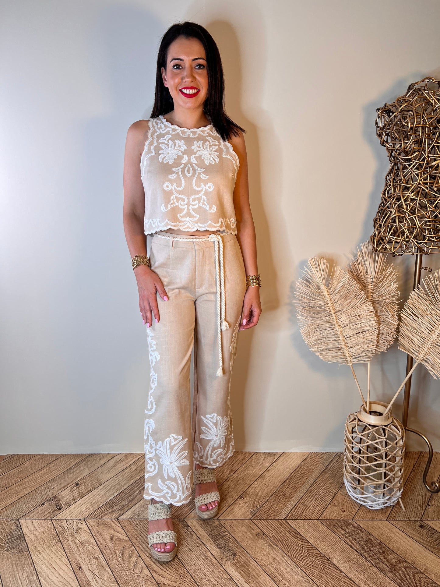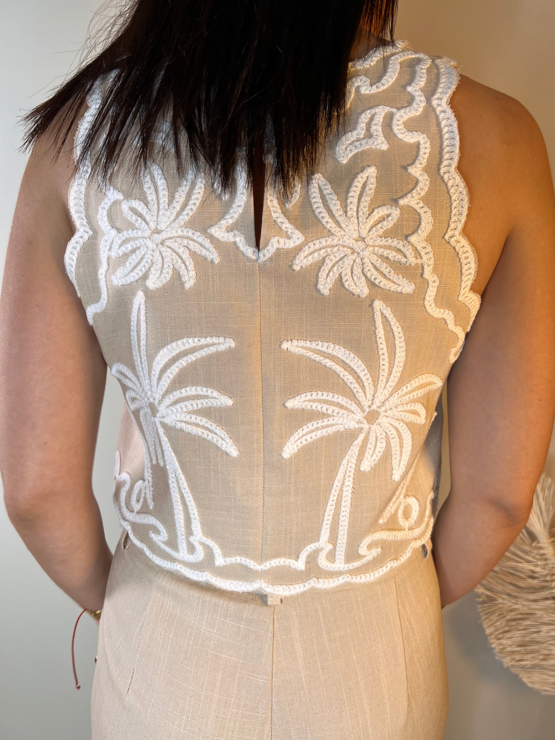Este elegante Top Palmer en color beige cuenta con una hermosa decoración bordada en blanco que aporta un toque de sofisticación a tu look. Confeccionado con materiales de alta calidad, este top no solo es elegante sino también duradero. Perfecto para una ocasión especial o una noche en la ciudad. ¡Haz una declaración de moda con Top Palmer!